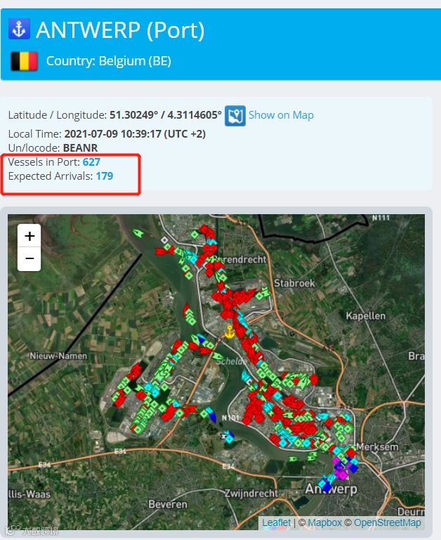 Container xChange发布的集装箱可用性指数显示,欧洲三大主要港口——荷兰鹿特丹港、比利时安特卫普港以及德国汉堡港正见证着集装箱的蜂拥而至。主要港口出现严重拥堵,甚至蔓延至内河航道,导致船公司安排跳港或改航。