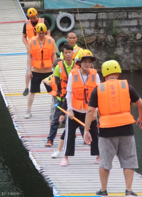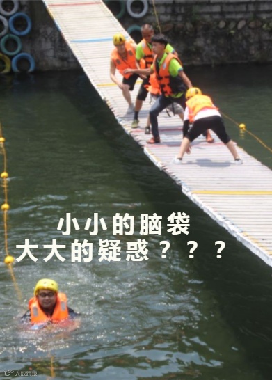 享用了美味的午餐和新鲜的水果(感谢人事小姐姐贴心准备),我们开始进行水上项目的挑战了。关于网红桥,教练是这么说的:“不会游泳的不要上,不会喝水的也不要上。”