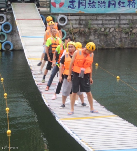 这个善意的提(jing)醒(gao)并没有打消我们想尝试的想法,大家都勇敢地站上了桥面。