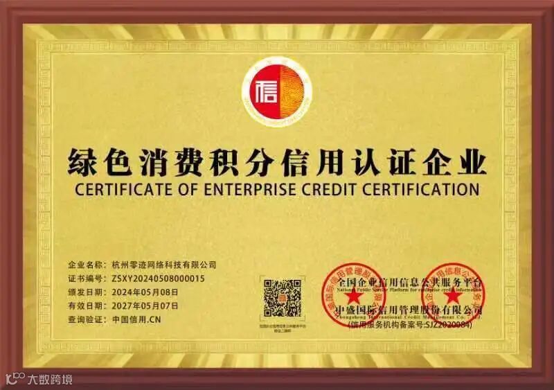 通过企业团队的努力,于2024年5月8日,终于获得了绿色消费必备的三块牌照: