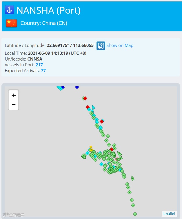 截至6月9日14时,有217艘货船到达南沙港口,还有77艘船即将抵达。