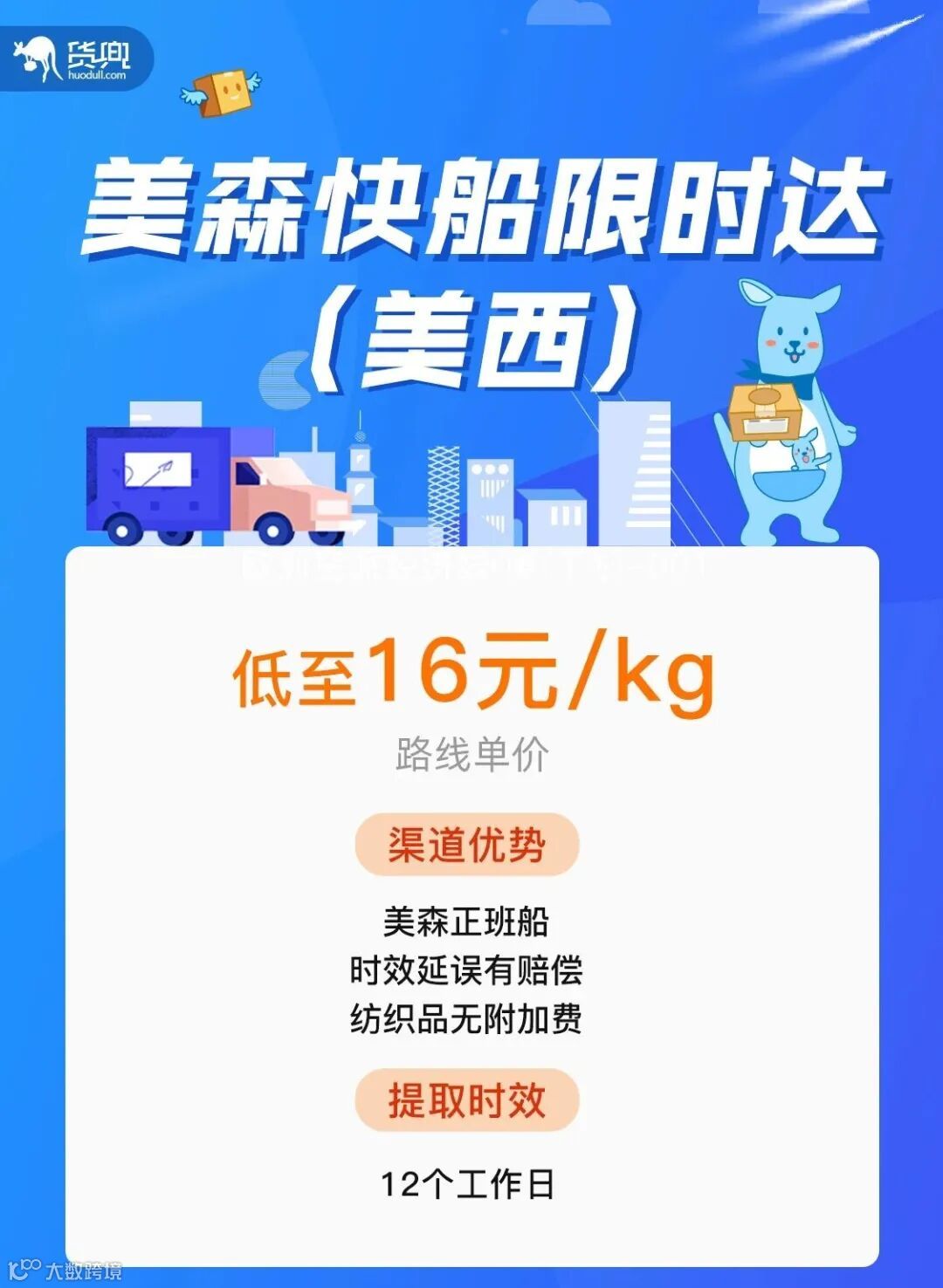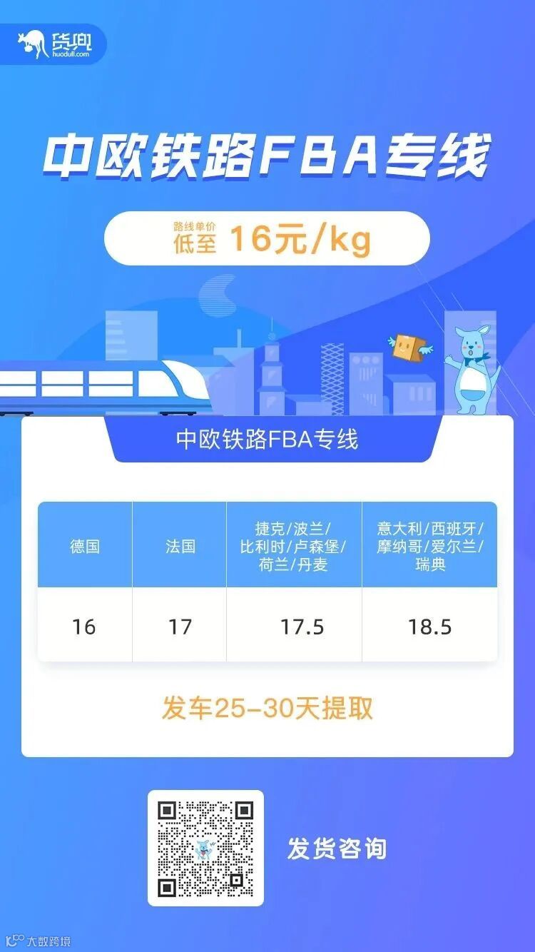 货兜推荐两条精品渠道:美森(美西)限时达和中欧铁路FBA专线,详情如下,供您参考。