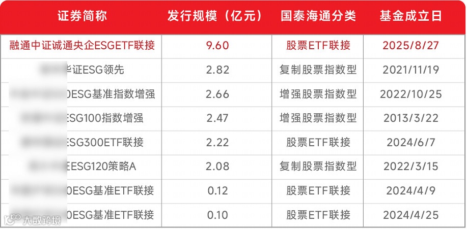 数据来源:Wind;除新成立的融通中证诚通央企ESG ETF联接外,其他基金的最新规模来自2025年二季报披露数据