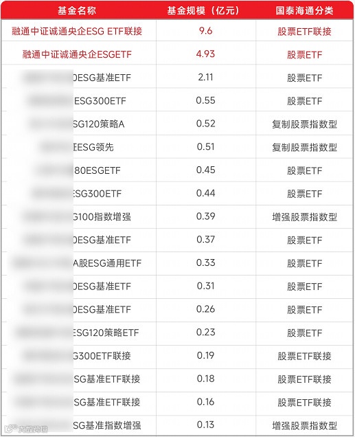 基金名称中含“ESG”的指数基金最新披露的规模