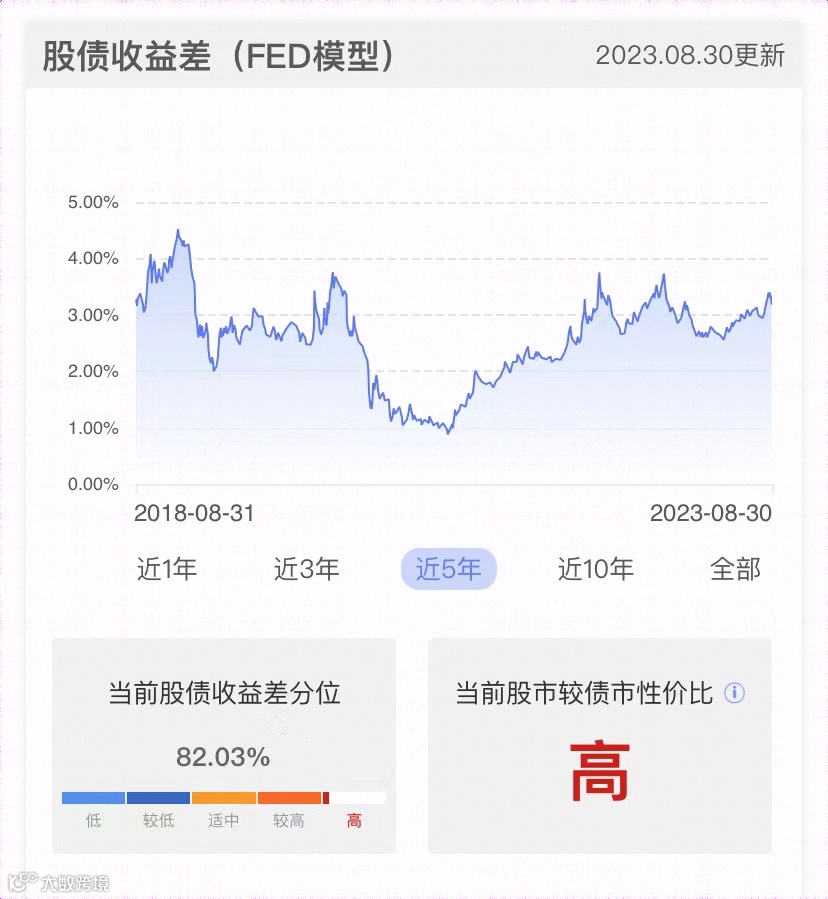 比如衡量股市投资性价比的股债收益差,已经到了近5年的83%分位。