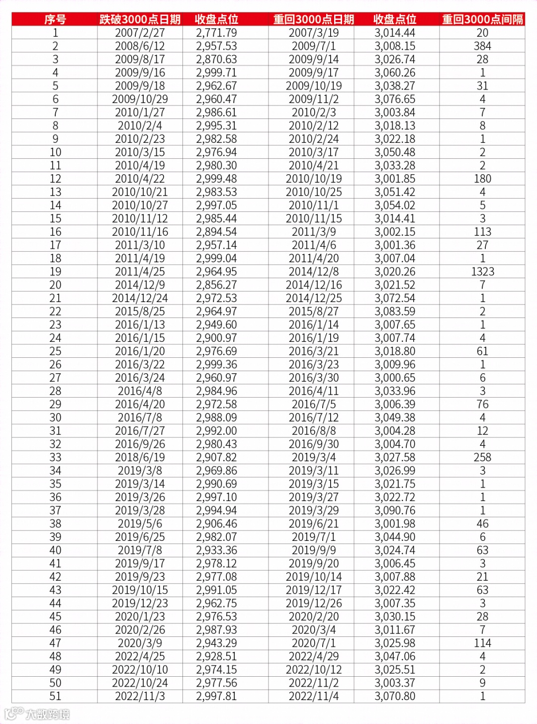 从历史数据来看,跌破3000点也不是什么世界末日。