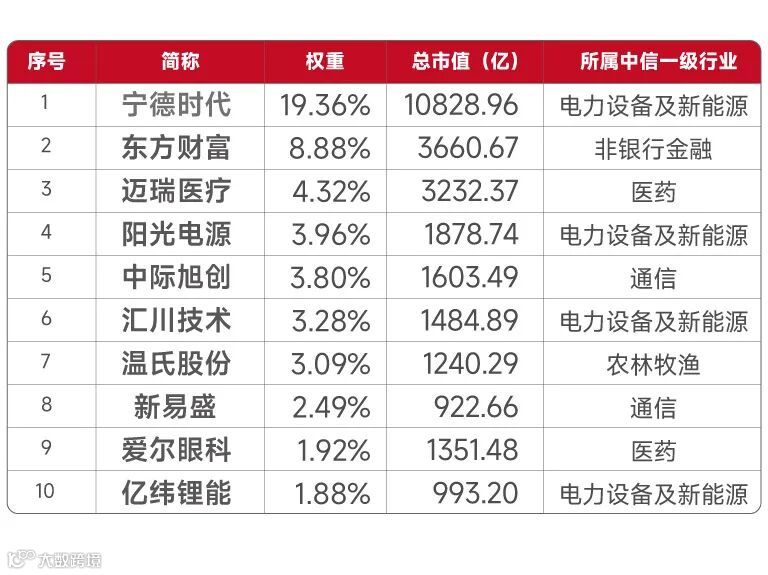 创业板指前十大权重成分股