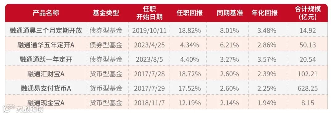 注:数据截至2024.10.25,基金业绩已经托管行复核,业绩比较基准来自于Wind,基金规模数据来自基金2024年三季度报告。融通通昊三个月定期开放债券型基金由融通通昊定期开放债券型基金变更注册而来;融通通昊定期开放债券型发起式基金于2018年4月17日成立,自2019年10月11日转型