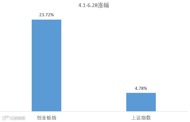 创业板指因此也在这波反弹中(2021/4/1-2021/6/28),涨幅远远超过上证指数。