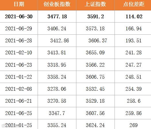 要知道,就在两年前(2019年6月28日),它们还相差1400多点。(创业板指1511.51点 VS 上证指数2978.88点)