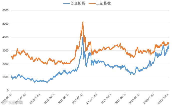 可以说,创业板指数是A股新兴成长风格的代表,而上证指数则为传统经济代言。
