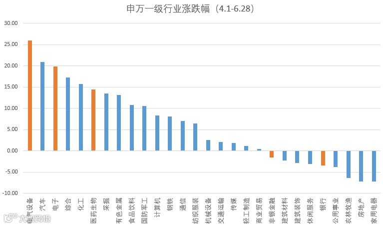 政策环境上,预计下半年政策重心更专注于绿色、创新、共享等主题下的长期高质量发展,政策密集落地,或更有利于成长板块。