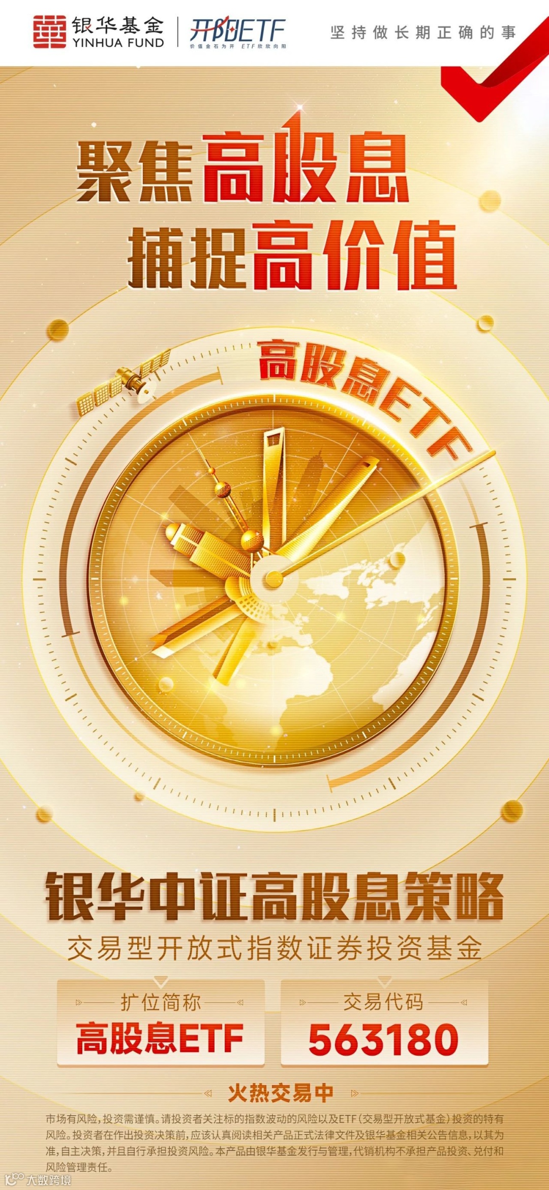 为把握被动投资大时代和新经济周期下的高股息资产机会,给大家介绍一只指数,即高股息ETF(563180)跟踪的高息策略指数。