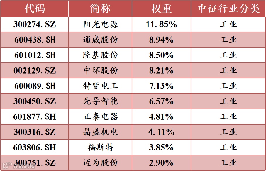 中证光伏产业指数前十大权重股