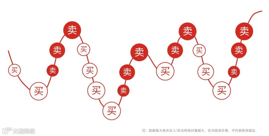 这种交易方式其实是左侧交易的一种,逆“市”而为,主要优势在于分批建仓/减仓,即使是在震荡市亦有获取收益的机会。当然,这种投资方式的劣势在于,若市场处于大牛市时,即市场点位远高于你心中的基准价时,则没有建仓或加仓的机会,导致无法享受到市场的上涨。