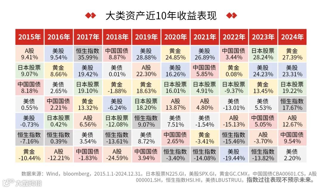 2、没有一种资产可以永远穿越周期,多元资产配置会是长期底仓策略