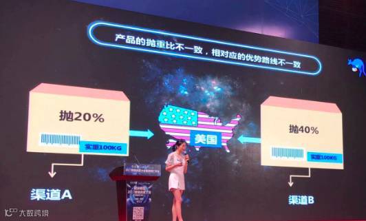 为什么说物流很复杂?专线的邮路部分是空运+清关+派送,为什么现在有的专线出来分20%的半抛,这是由于算法不同导致的。因为我们的客户的产品品类不一样,我们就会推荐说算实重货。比如说我们厦门有一个产业,那边油画特别多的客户,我们就会推荐他们走特别有优势的路线。这边我举了一个例子,我拿了我们平台上的真实渠道举了一个例子。一个是101公斤的货,价格便宜了21%。同样渠道摆在你面前,你如何智能选择渠道,就能科学合理地帮你降低成本。这并不是我们货量多少的问题,而是你如何科学选择渠道的问题。