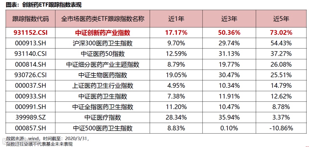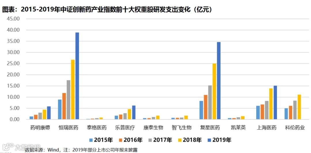 从持仓来看,这十大重仓股在研发投入上力度也是医药行业中最大的一些公司。唯一可惜的是,该指数暂时没能纳入港股中的创新药领域巨头比如信达生物、百济神州等,这也是ETF的共同问题,就是投资没法沪港深跨境。