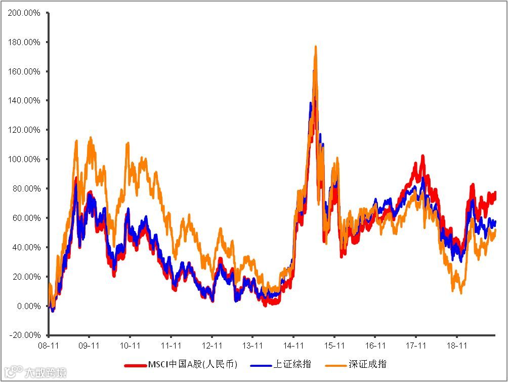 MSCI中国A股指数与主流指数收益对比