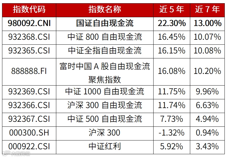 中证全指自由现金流指数基日为2013年12月31日,2020-2024年收益率分别为9.65%、30.79%、-8.90%、12.14%、35.49%