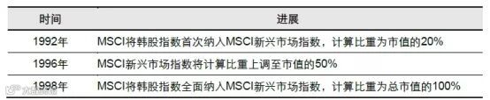韩国市场加入MSCI的历程如下