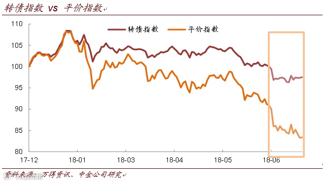 从与平价指数的对比来看,当前的可转债已经体现出了抗跌特征。