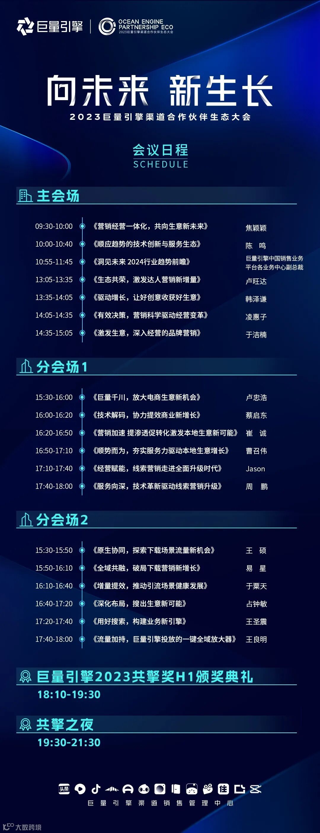 12月8日,以“向未来,新生长”为主题的2023巨量引擎渠道合作伙伴生态大会即将在杭州举办,会上将分享巨量引擎渠道生态的新技术、新思考、新规划,一起见证巨量引擎如何在以技术为核、以底层产品策略能力的全域布局基础之上,驱动渠道服务商持续夯实服务力,共赴生态新未来。