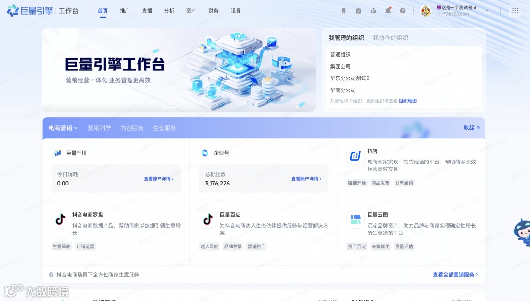 为了提升品牌主的操作效率,巨量引擎工作台首页提供产品和数据的全景呈现。