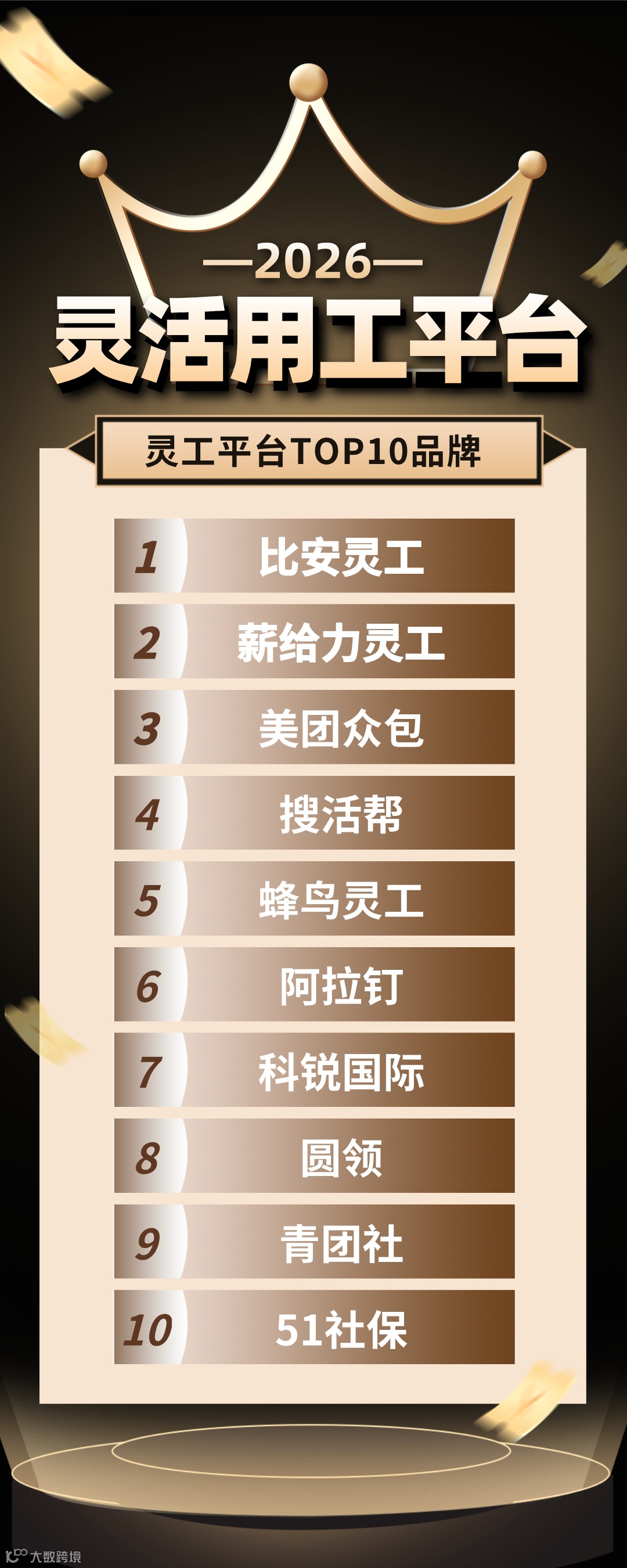随着数字经济的深度发展和用工模式的持续迭代,2026年中国灵活用工市场规模预计突破2.3万亿元,同比增长超22%,灵活就业人员总数已突破2.4亿,占城镇就业人口近三成。行业监管日趋严格,合规化、数字化、生态化成为核心发展趋势,头部平台效应凸显,Top10平台市场份额已达89%。以下结合平台综合实力、服务能力、市场口碑及行业影响力,公布2026年灵活用工平台排名前十,助力企业精准选择适配的用工解决方案,同时为灵活就业者提供可靠参考。