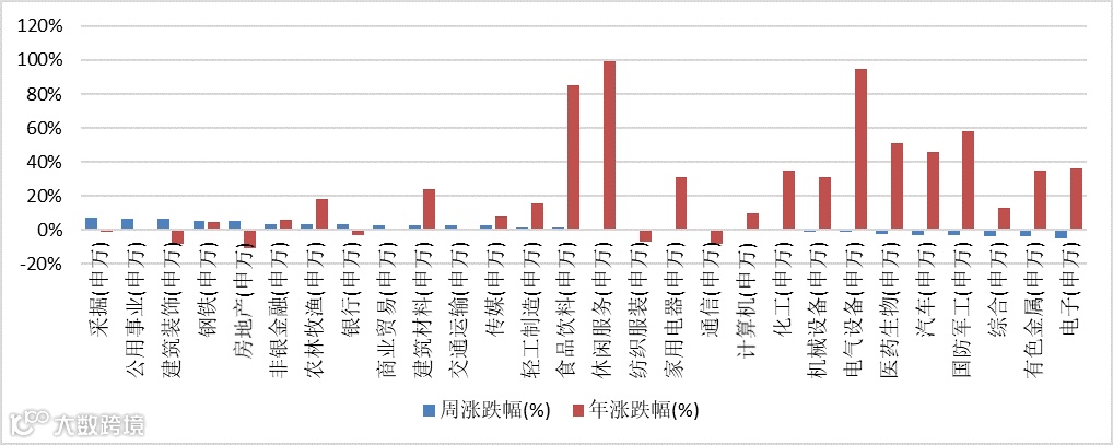 上周央行公开市场操作货币净投放-450亿。上周短端利率涨跌不一,其中1天回购利率上升10.9bp至2.08%,7天回购利率下降28.2bp至2.05%;长端利率普遍下行,其中5年期国债利率下降3.12bp至2.66%,10年期国债利率下降1.78bp至2.83%。融资余额较上期增加312.32亿元,存量上升至17106.83亿元。沪股通资金净流入201.92亿元,深股通净流入68.48亿元,港股通资金净流出13.67亿元。产业资本净减持84.89亿元,其中银行、交通运输净增持较多,而计算机、电子净减持较多。