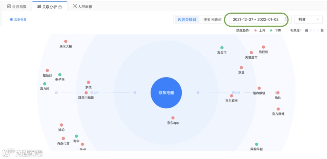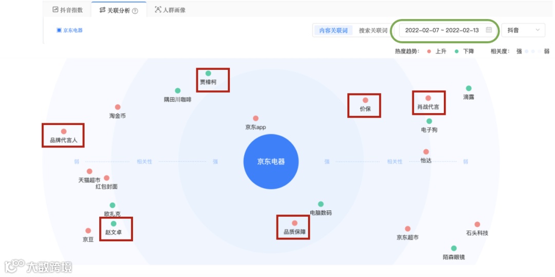 除此之外,京东电器的内容资产也得到了沉淀和优化。投放前,京东电器的关联词主要集中在【京东超市】、【京东APP】等矩阵内容,缺乏核心记忆点。而在投放后,【品质保障】这一强相关内容资产则持续保持在第一名高热度,这体现出随着内容营销深入人心,用户认知也随之与品牌强绑定。