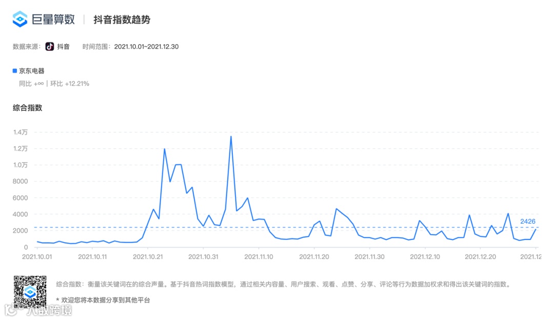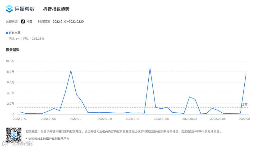 广告短片《后背》播出一个月内,京东综合指数和搜索指数分别环比增长超300.71%、255.28%。