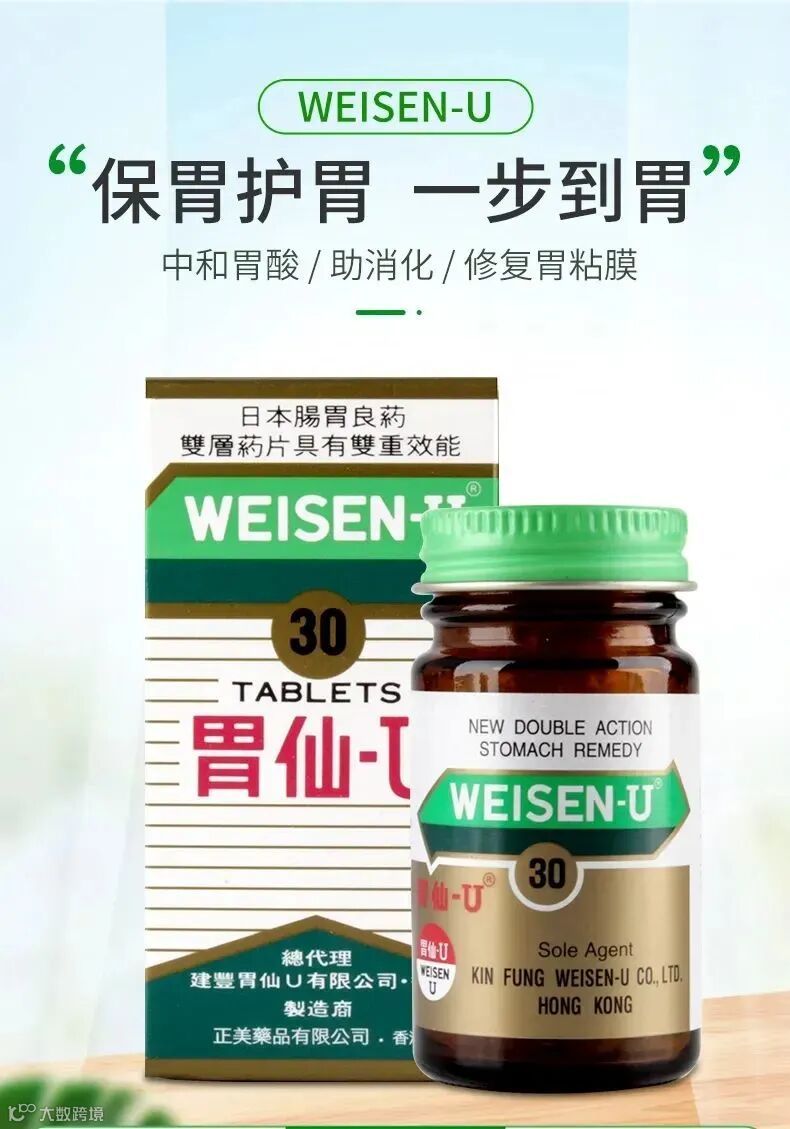 胃仙U已在全球畅销60余年,具有独特的双层药片结构、多重效能,可以有效中和胃酸、促进消化、修复胃黏膜。