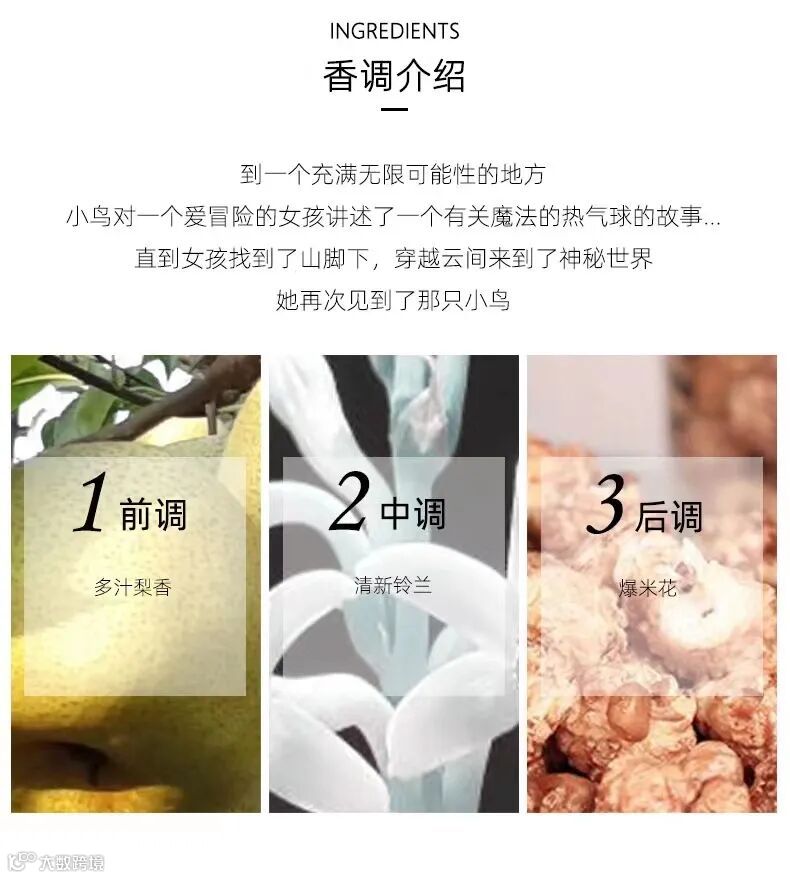 将童话世界装进瓶中,握在手里,轻轻一喷,天马行空,奇幻立现,这是童话里的香味。