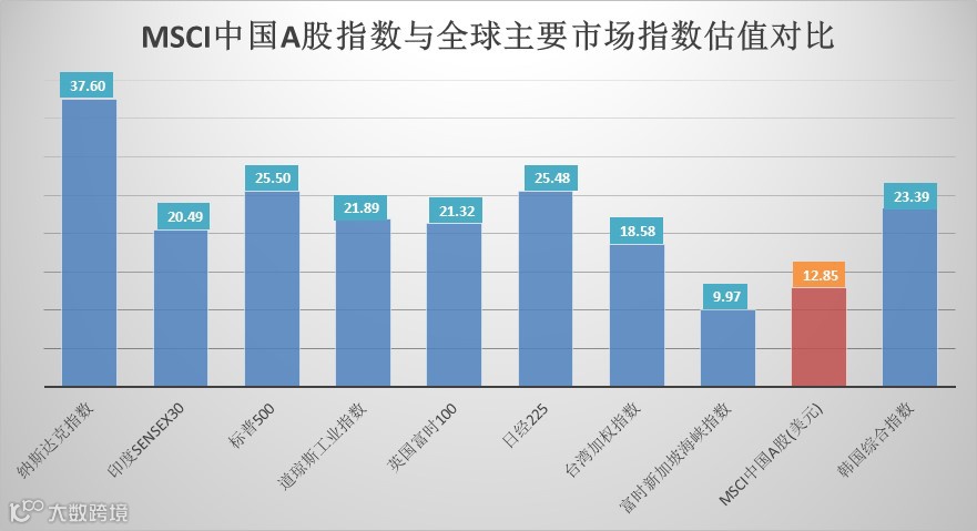 从估值数据来看,该指数目前的PE估值为12.85倍,目前已处于历史底部区域,与全球主要市场指数相比也是“估值洼地”,长期投资价值显著。