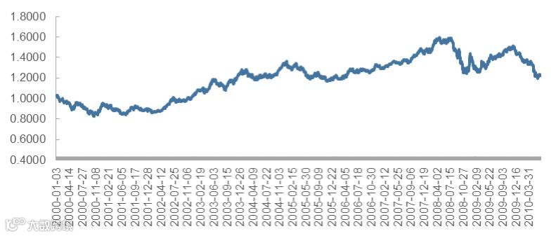 受2001 年互联网泡沫破裂以及“911”恐怖袭击影响,美元从2001 年年末开始出现了震荡下跌。尤其是美元兑欧元汇率,在2001 年下半年开始,一路飙升。