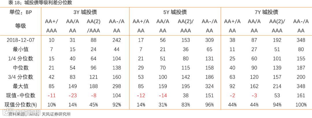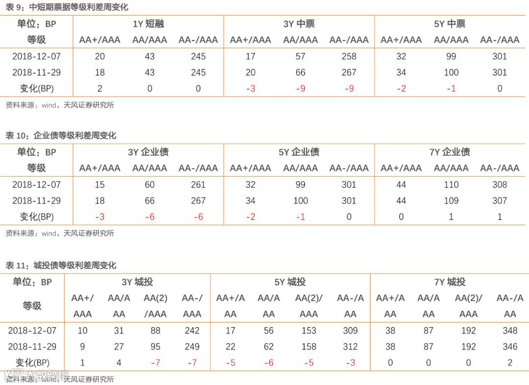 各类信用等级利差整体呈缩小趋势。具体来看,中短期票据收益率曲线1年期AA+、AA和AA-较AAA等级利差扩大0-2BP,3年期等级利差缩小3-9BP,5年期等级利差缩小0-2BP;企业债收益率曲线3年期AA+、AA和AA-较AAA等级利差缩小3-6BP,5年期等级利差缩小0-2BP,7年期等级利差扩大0-1BP;城投债收益率曲线3年期AA+、AA和AA-较AAA等级利差变动-7-4BP,5年期等级利差缩小3-6BP,7年期等级利差扩大0-2BP。