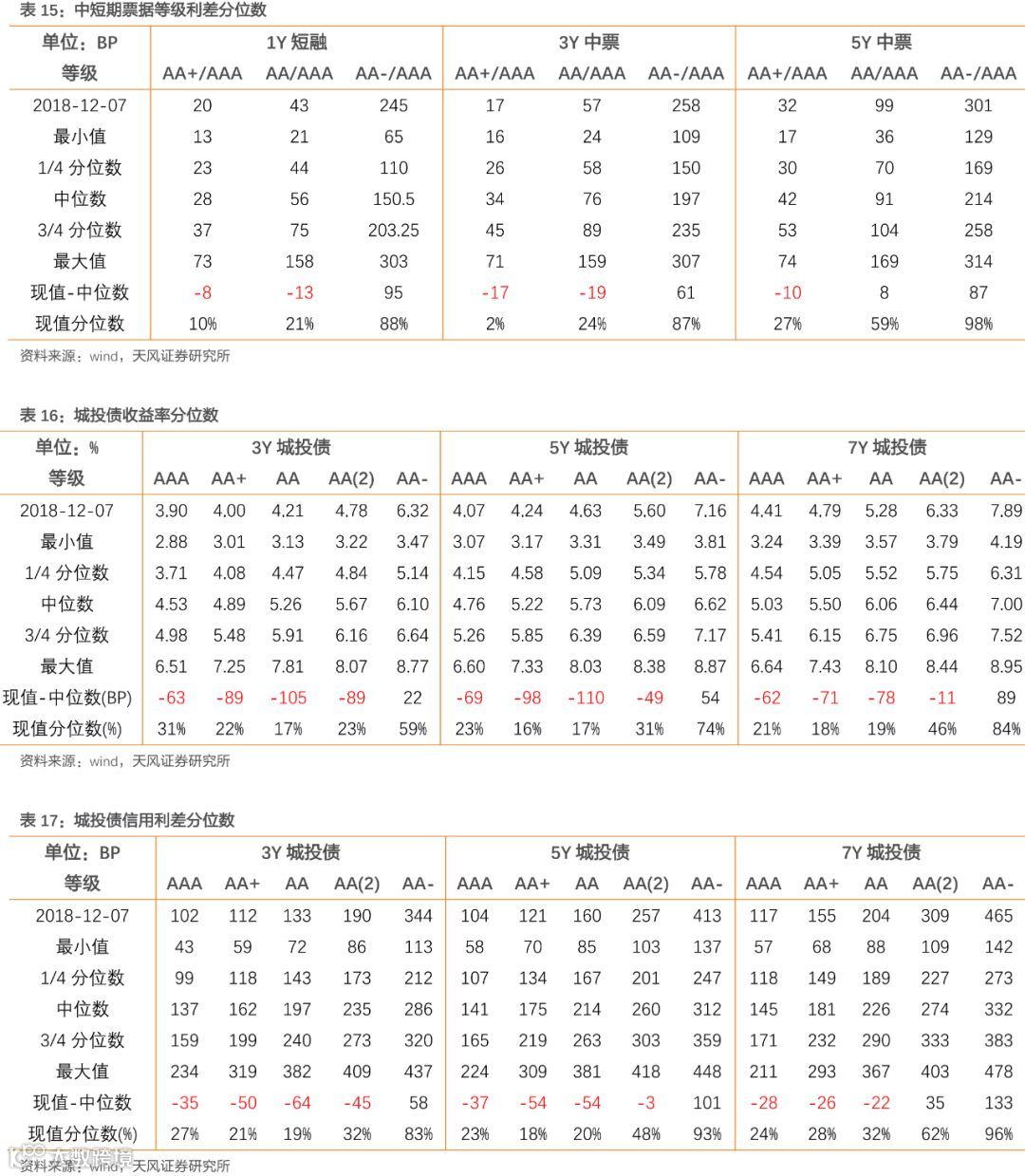 用利差整体呈扩大趋势。具体来看,中短期票据收益率曲线1年期各等级信用利差缩小1-3BP,3年期各等级信用利差变动-5-4BP,5年期各等级信用利差扩大6-8BP;企业债收益率曲线3年期各等级信用利差变动-4-2BP,5年期各等级信用利差扩大6-8BP,7年期各等级信用利差扩大4-5BP;城投债收益率曲线3年期各等级信用利差变动-3-8BP,5年期各等级信用利差扩大2-8BP,7年期各等级信用利差扩大0-2BP。