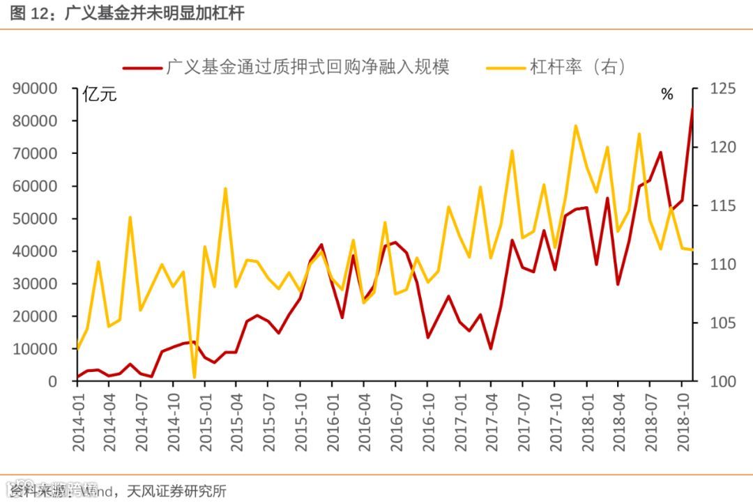 从杠杆的角度来看,商业银行明显不是加杠杆配信用的主体,商业银行整体逐渐转为净融出资金。广义基金和券商自营在杠杆方面更具有可比性,也能用于比较不同阶段的机构行为变化。