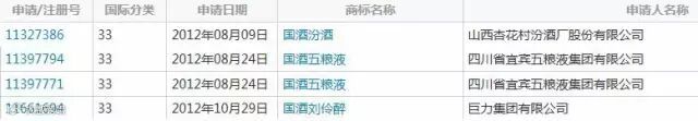 其他酒厂反对茅台“国酒”的同时,竟也在积极申请“国酒”商标,“国酒五粮液”、“国酒汾酒”、“国酒刘伶醉”等商标申请赫然在列,“国酒”商标之争在白酒行业愈演愈烈。
