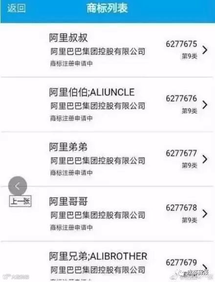 马云爸爸则直接把全家人都注册了,既然有阿里巴巴,就要有阿里妈妈,有了阿里妈妈,为什么不可以有阿里爷爷、阿里奶奶、阿里伯伯、阿里审审(还不是婶婶