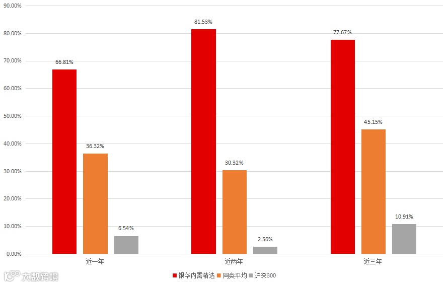 基于敏锐的市场眼光,自刘辉管理银华内需精选以来,该基金的净值一路攀升。银河证券数据显示,银华内需精选混合去年斩获了100.36%的回报率,同类夺冠。此外,从截至到目前该基金各阶段的业绩,均取得了行业领先的成绩,该基金近1年、近2年、近3年累计回报分别为66.81%、81.53%、77.67%,同类排名均在前列。(数据来源:银河证券,截至2020年5月29日,银华内需精选的分类为“混合基金-偏股型基金-偏股型基金(股票上下限60%-95%)(A类)”,银华内需精选2019年、近1年、2年、3年各阶段业绩同类排名分别为1/413、23/439、9/379、48/342)。