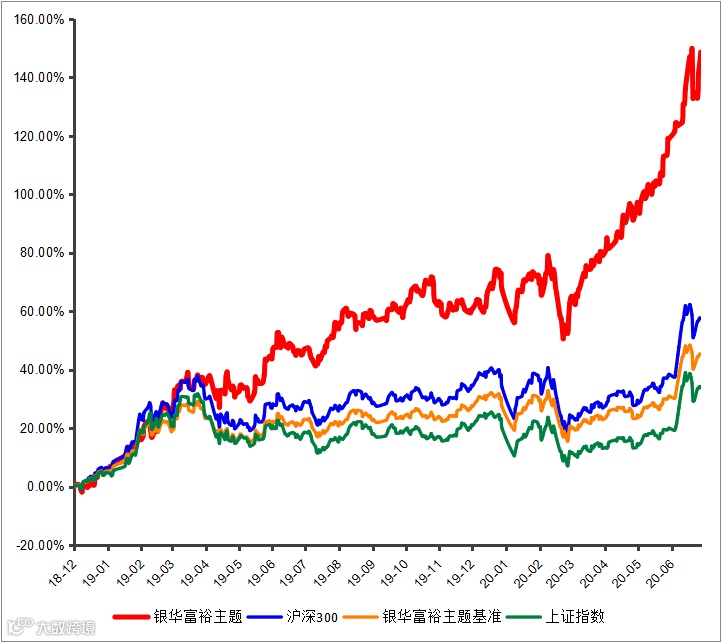 从2018年12月27日开始,焦巍先生成为了该基金的第四任掌舵手,管理银华富裕基金,在管理期内,他2019年的收益为62.89%,排行同类偏股混合基金前16%,截至今年7月23日,今年以来该基金的收益率为51.63%。