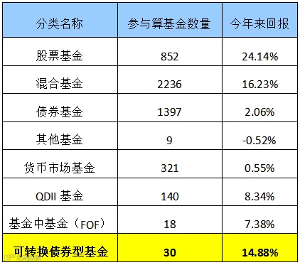 银河证券数据显示,截至3月15日,可转债基金年内平均收益率为14.88%,超过债券型基金平均收益,与灵活配置型基金收益16.33%也相差无几。