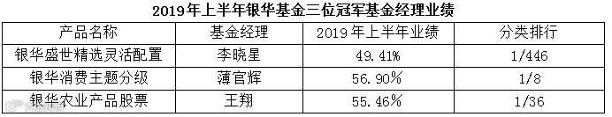 2019年上半年,银华基金旗下15只基金回报超过40%、9只排名同类第一。