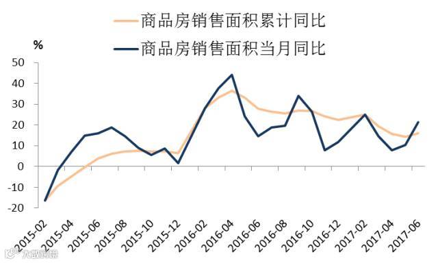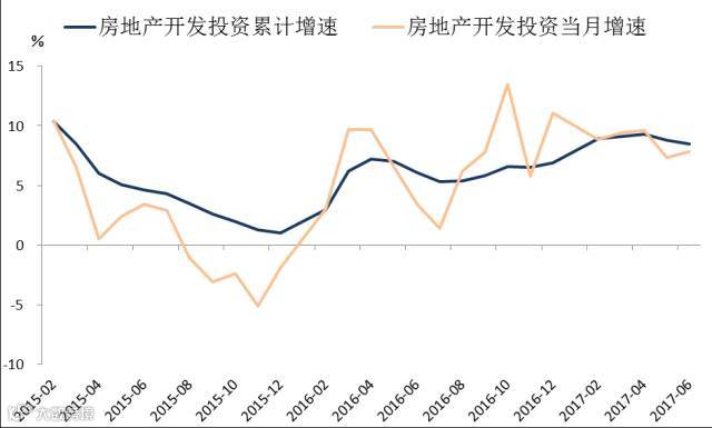 1-6月份,房地产投资累计同比增速为8.5%,较上月下降0.3个百分点,连续3个月增速下降。而当月同比增速上升至7.86%,较上月大幅提升0.52个百分点。6月份土地购置面积累计同比较上月上升3.5个百分点至8.8%,而房屋新开工面积增速上升至10.6%。