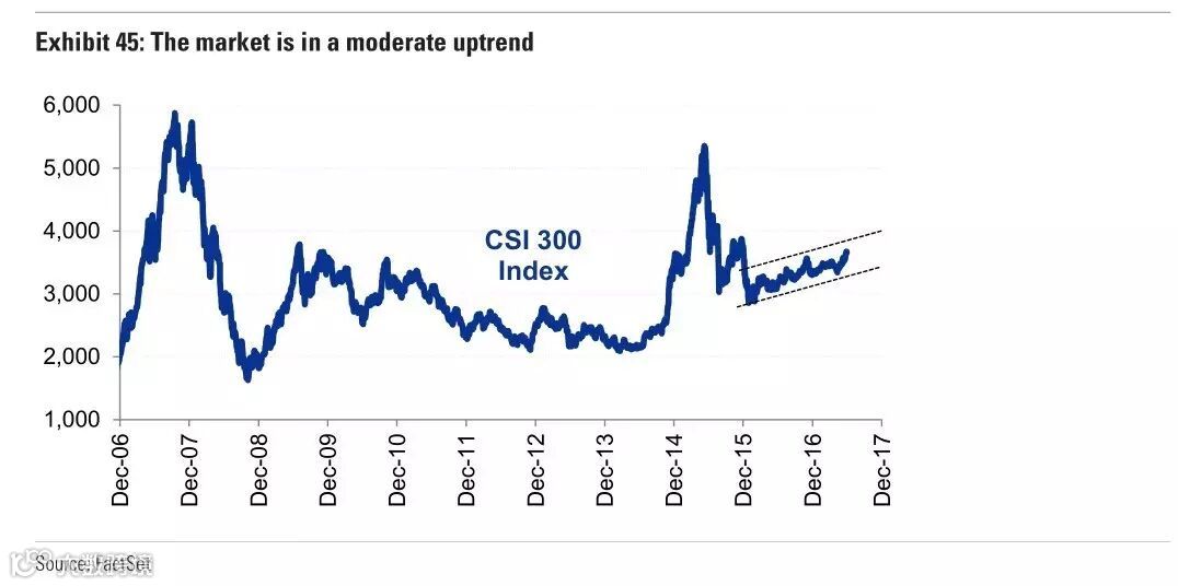 高盛重仓中国离岸股票的一个原因就是,中国的宏观政策保持稳定的可能性比较大,而且19大之前,中国的限制可能会变得更少。这同样适用于中国A股。另外货币宽松有望持续,这在另一方面也为中国A股提供了支撑。而且,从与监管层的甲流发现,A股2014年和2015年的暴涨之后暴跌的情况不太可能会再发生。