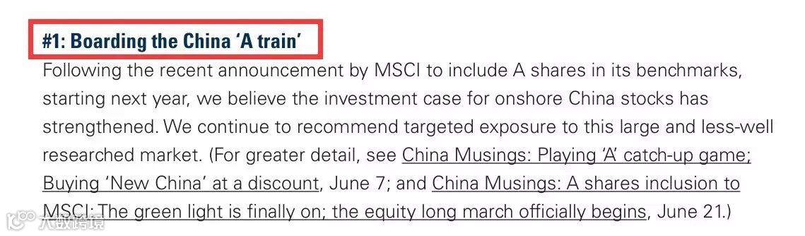 A股纳入MSCI后,高盛专门研究了一下A股,现在的结论是快上车。