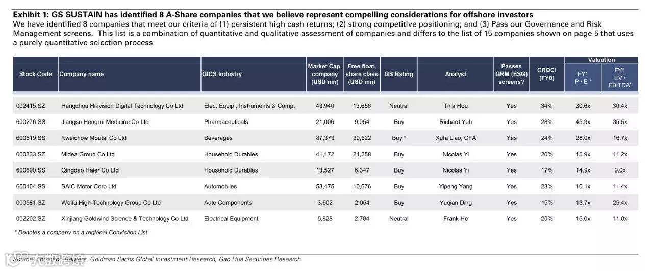 我们强调了8家高现金回报、增长相对优势强劲的A股公司。高盛运行了一个盈利和风险筛选,入选的公司比例由2014年的12%上升至20%,并且风险筛选显示,股票的合格率正在增加。