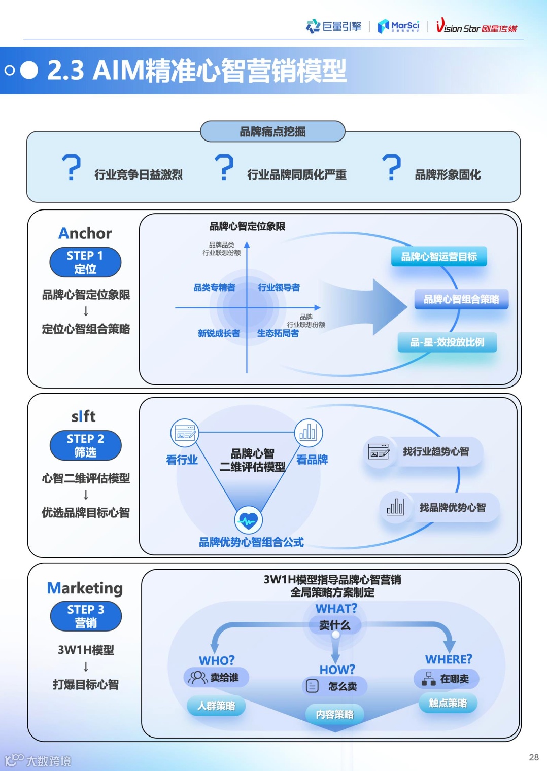 剧星传媒创新提出心智营销“AIM模型”,以 “定位 Anchor- 筛选sIft - 营销Marketing” 三步走策略,实现精准运营,助力品牌短期提效、长期增长。
